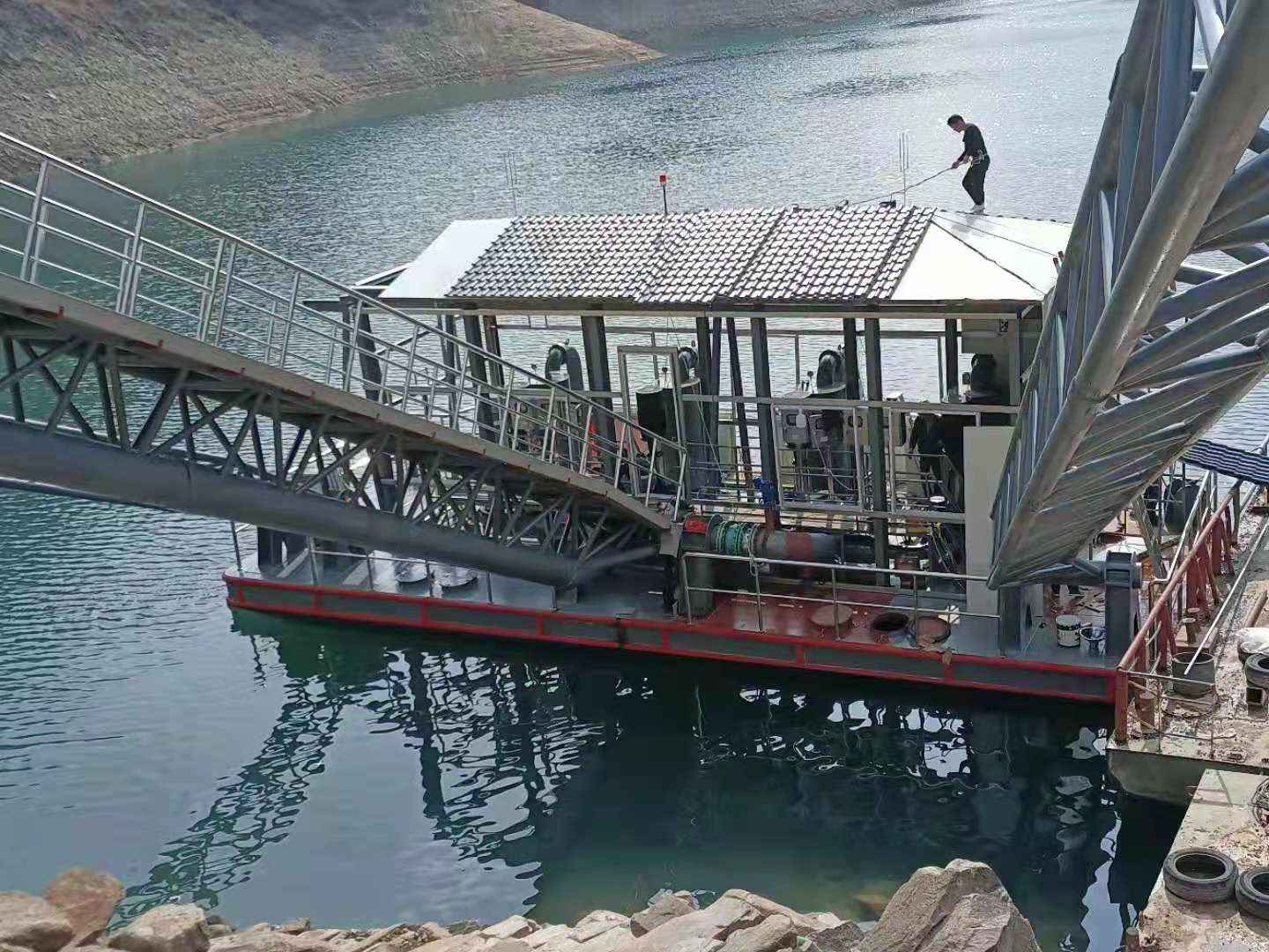 - 茌平县东邢水厂项目取水浮船泵站正在安装中 2022-06-10